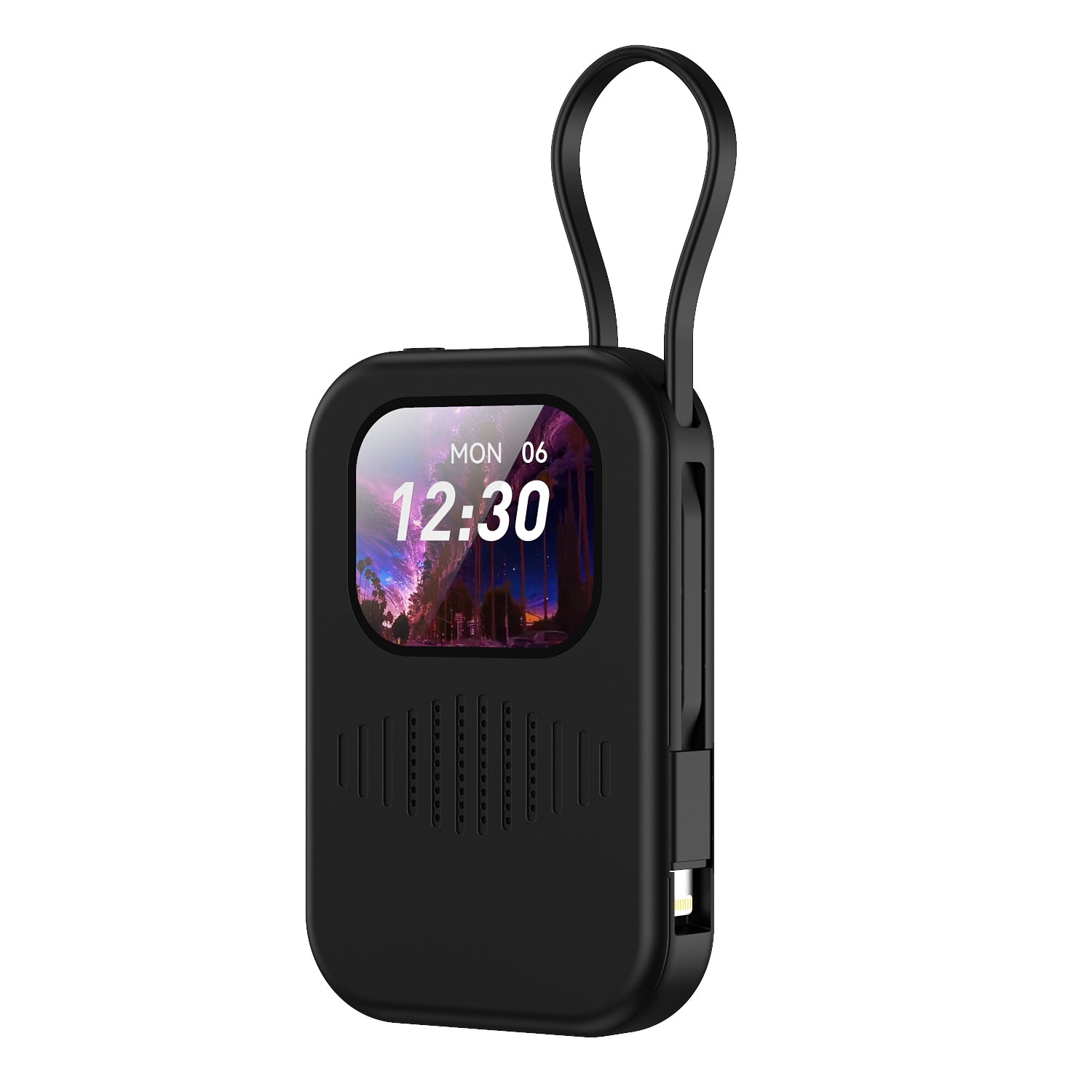 ماشي غير مؤشر للشحن! الشاشة الرقمية ديال هاد الجهاز كتشبه الساعات الذكية، كتوريك حالة البطارية، إشعارات مهمة، وحتى تنبيهات باش تبقى ديما على علم بكل جديد. هاد الميزة كتخلي الجهاز يتجاوز كونه مجرد بطارية ومكبر صوت، وكيولي مساعد ذكي كيخليك ديما متصل ومطمئن