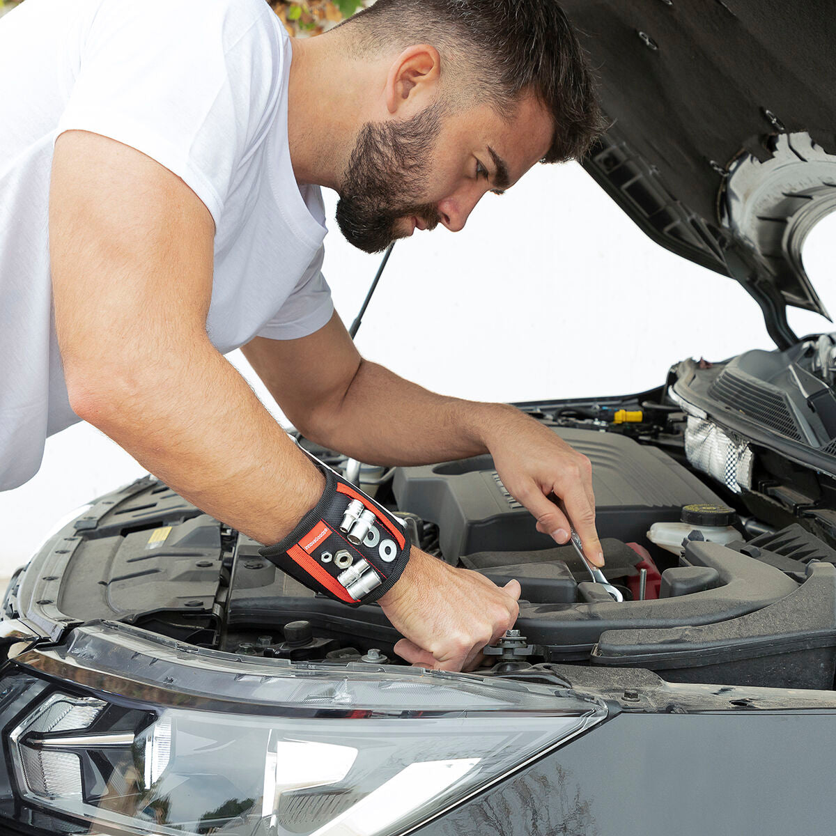 هذا السوار مصمَّم خصيصاً لعشّاق التصليح يحتوي على مغناطيسات قوية مدمجة داخل الحزام تُمسك بالبراغي، المسامير، الغسّالات، رؤوس المِثقاب وغيرها من القطع المعدنية الصغيرة. سواء كنت تعمل أسفل السيارة، على سلم أو داخل خزانة ضيقة، كل ما تحتاجه سيكون في معصمك مباشرة، دون أن تضيّع وقتك في البحث