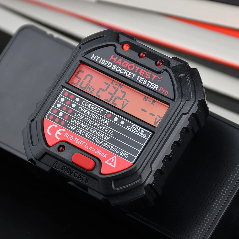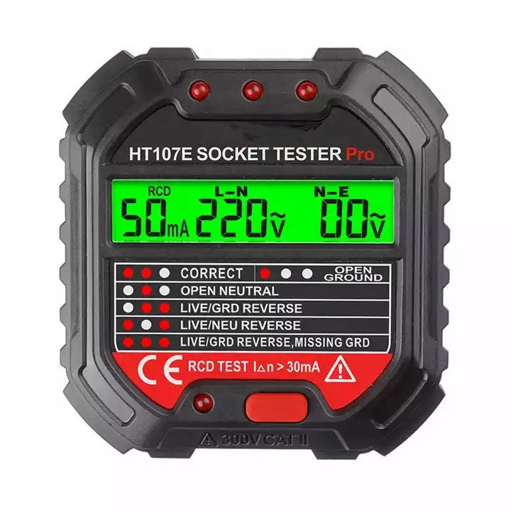 مزود بشاشة ل س د مضيئة توضح الجهد الكهربائي بشكل واضح، حتى في الأماكن المظلمة. بالإضافة إلى مؤشرات ليد ملونة تسهّل معرفة النتيجة فوراً، مع زر لاختبار دارة الحماية للتأكد من عملها بكفاءة.