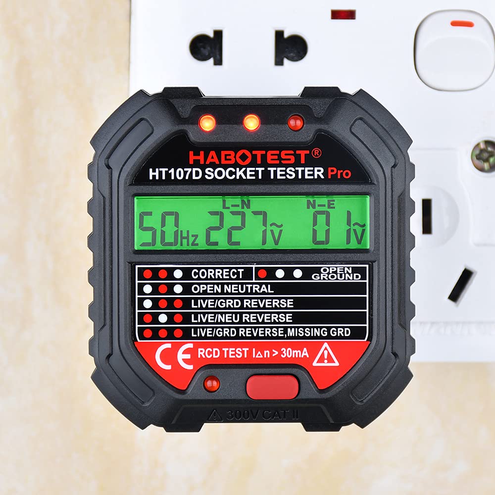 جهاز اختبار المقبس الرقمي متعدد الوظائف يساعدك على التأكد من صحة التوصيلات الكهربائية في ثوانٍ. يكشف لك ما إذا كان السلك الحي، المحايد ، أو الأرضي موصول بشكل صحيح، ويعرض الأخطاء الشائعة مثل عكس الأسلاك أو فقدان التأريض