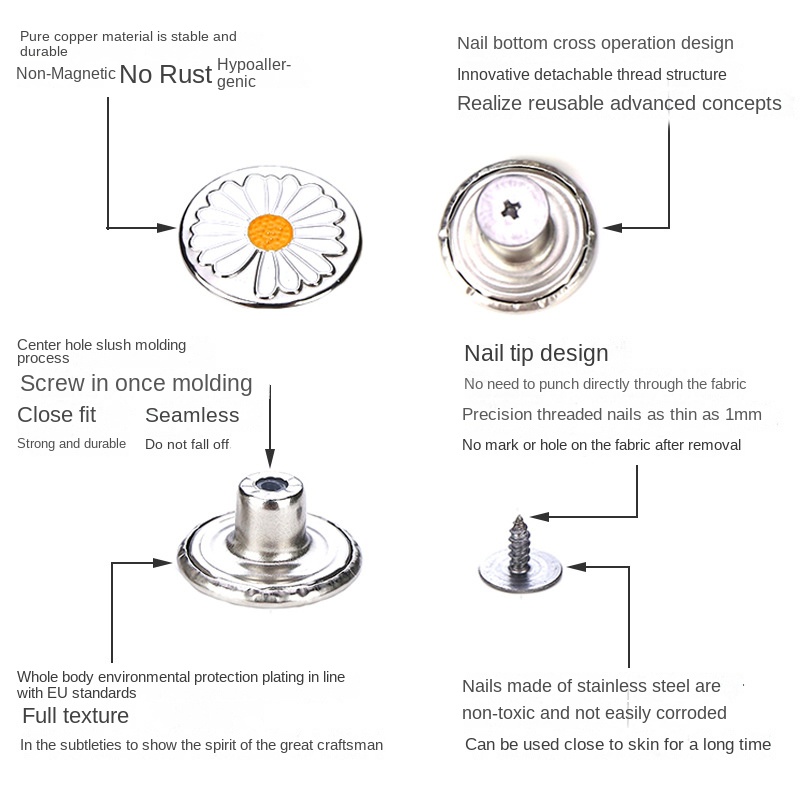 Ensemble de boutons de jeans amovibles sans couture