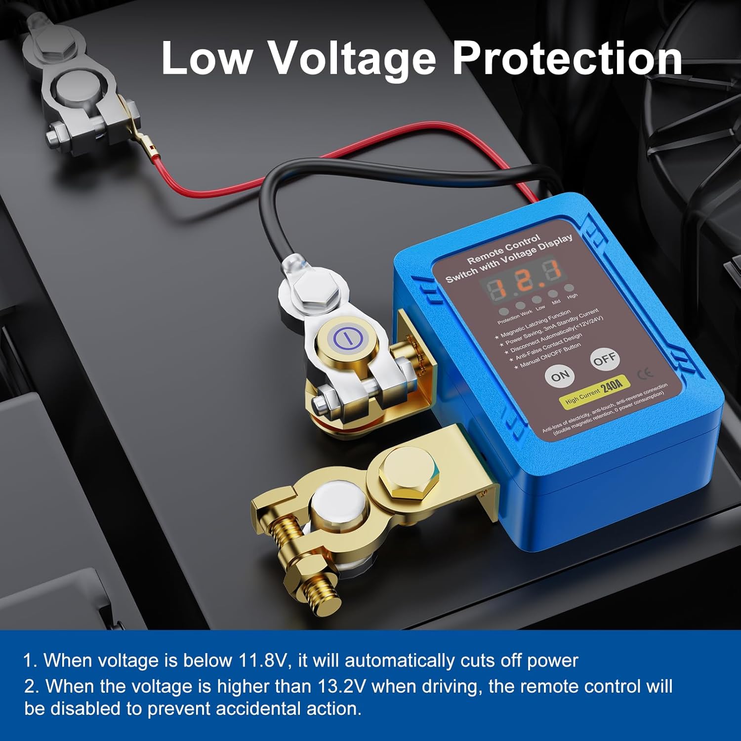 هاد الجهاز كيتركب بسهولة وسيخليّك تفصل البطارية ديالك من بعد بالكابل، بلا ما تحتاج تفتّح الكبّوت كل مرة. بفضل الريموت كنترول، تقدر تفصل أو تشغّل البطارية بلا مجهود من داخل السيارة أو من بعيد. أيضًا كيحمي النظام الكهربائي من التصريف المفاجئ ويطوّل عمر البطارية ديالك