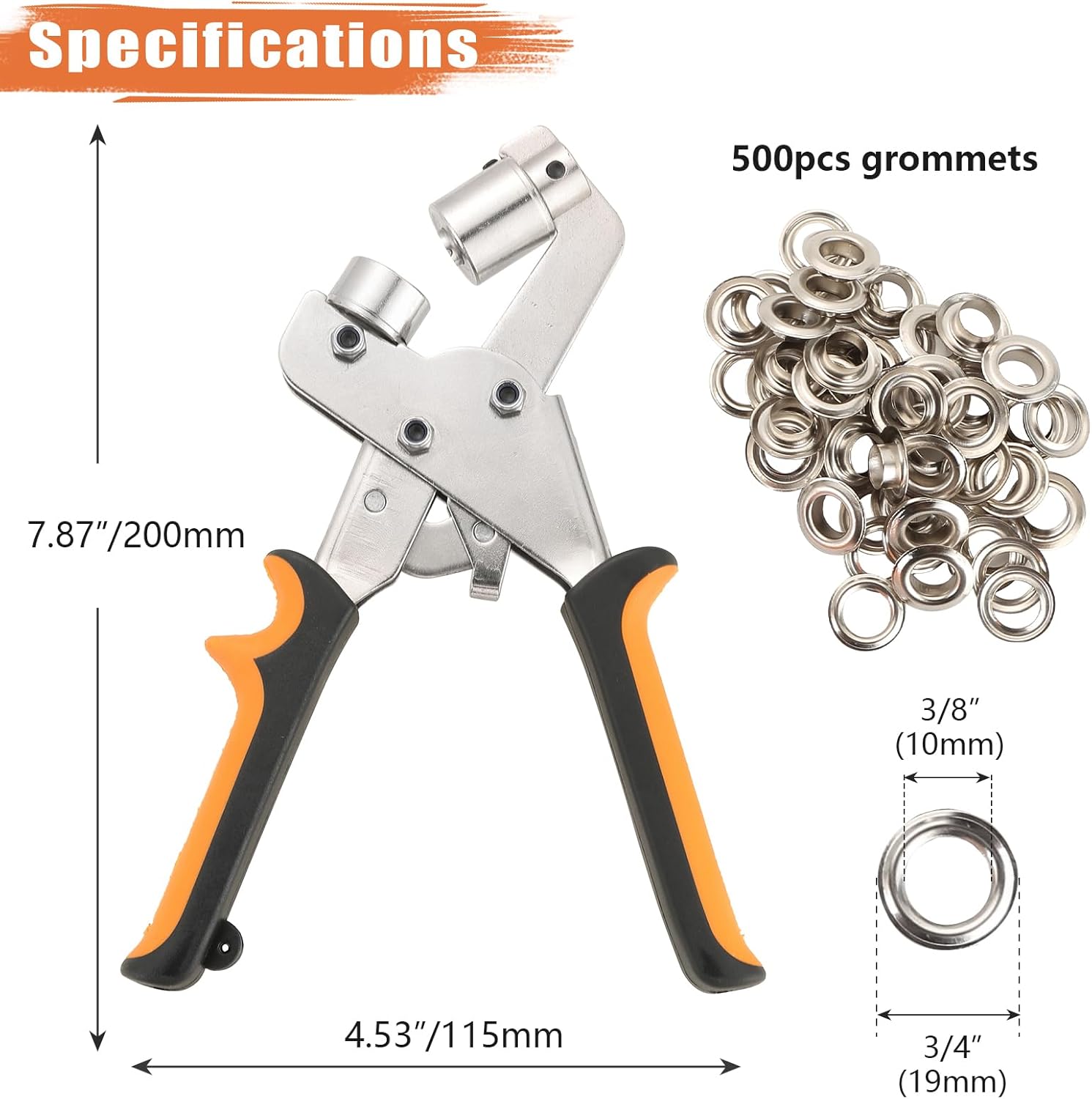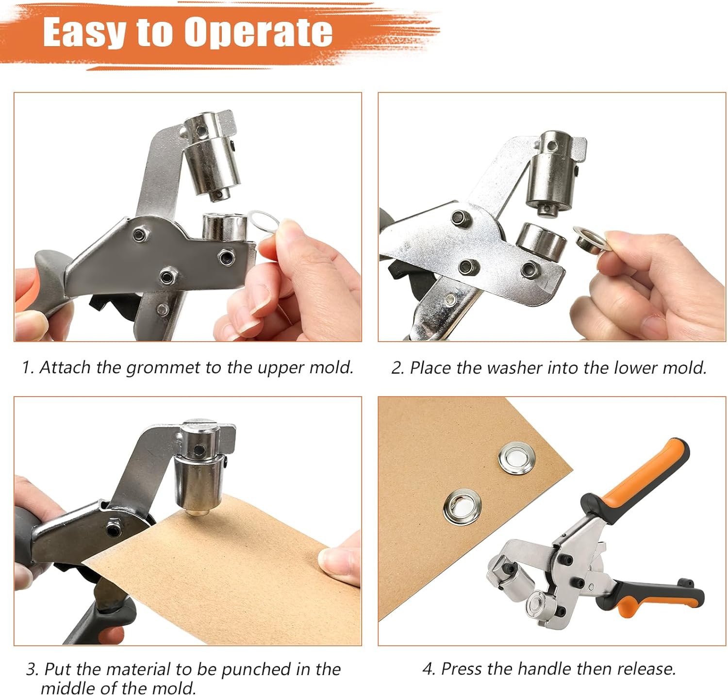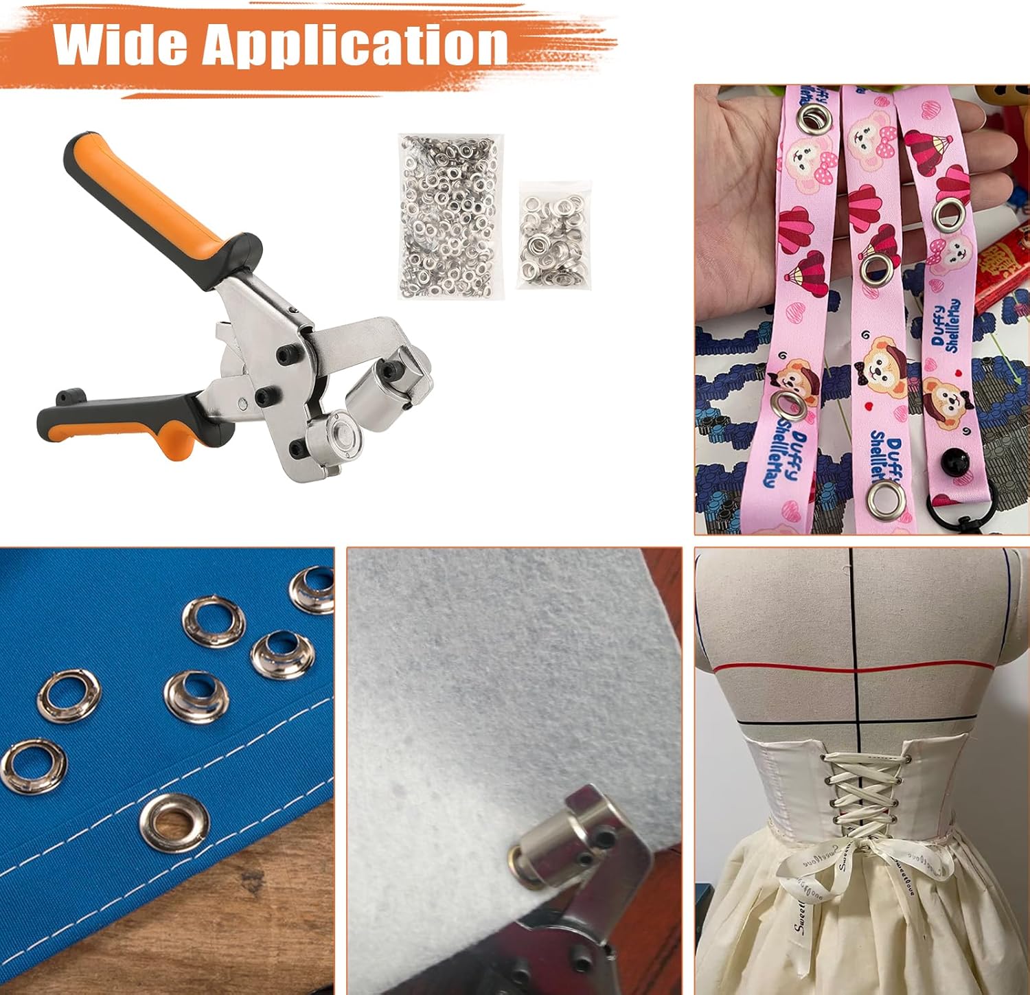 الأدوات اللي فيه مصنوعة من الحديد القوي اللي كيتحمّل الضغط والاستعمال المتكرر. الحلقات اللي جاية معاه كتجي بأحجام وألوان مختلفة باش تناسب أي نوع من القماش، الجلد أو البلاستيك. ما كيتصدّاش، وما كيتبدلش اللون مع الوقت، وكيخليك مطمئن أن النتيجة ديالك غتبقى ثابتة ومضبوطة