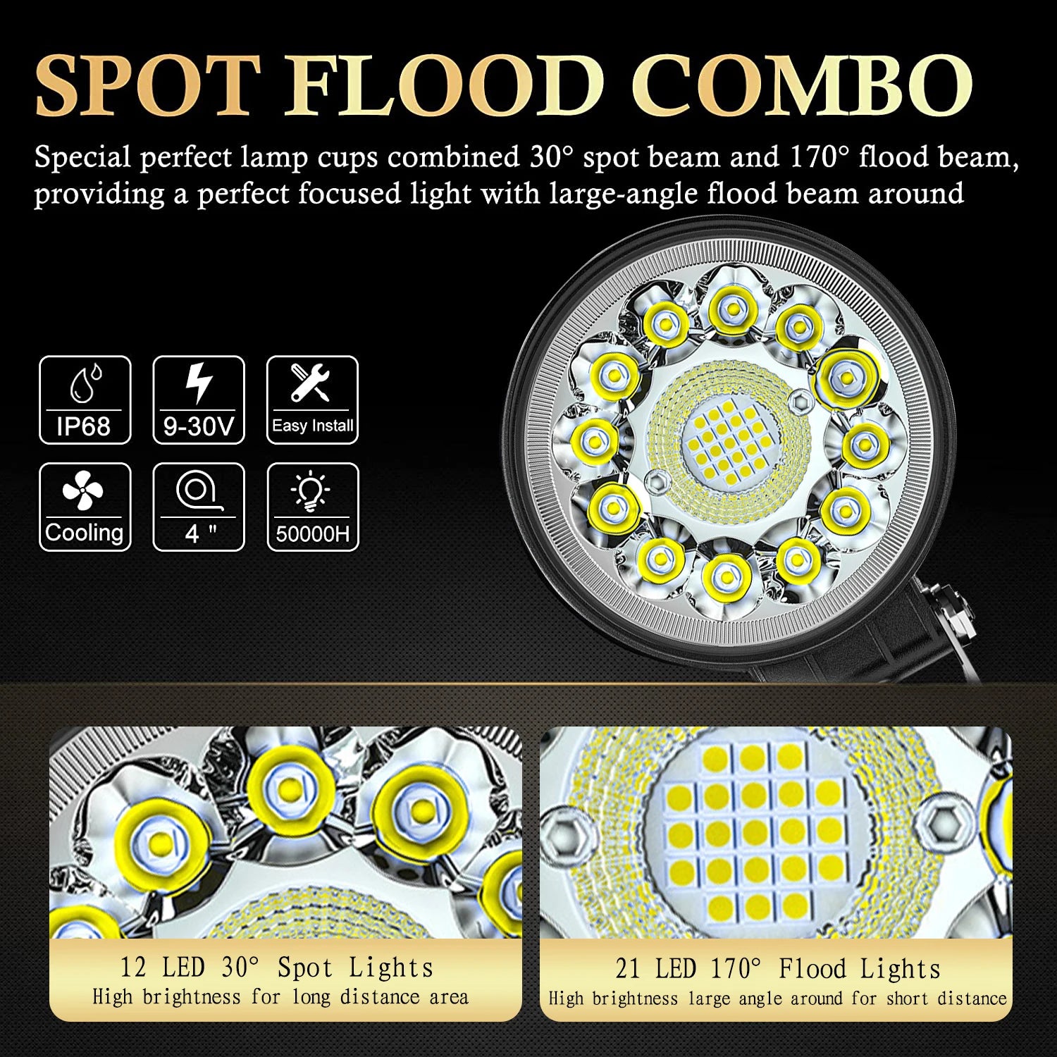 التركيب ديالو بسيط بزاف، ما كتحتاج لا خبرة لا أدوات خاصة. يمكن تثبيتو فمقدمة السيارة، الشاحنة، الدراجة النارية أو أي وسيلة أخرى. كيتحكم فزاوية الإضاءة بسهولة باش توجه الضوء بالطريقة اللي بغيتي