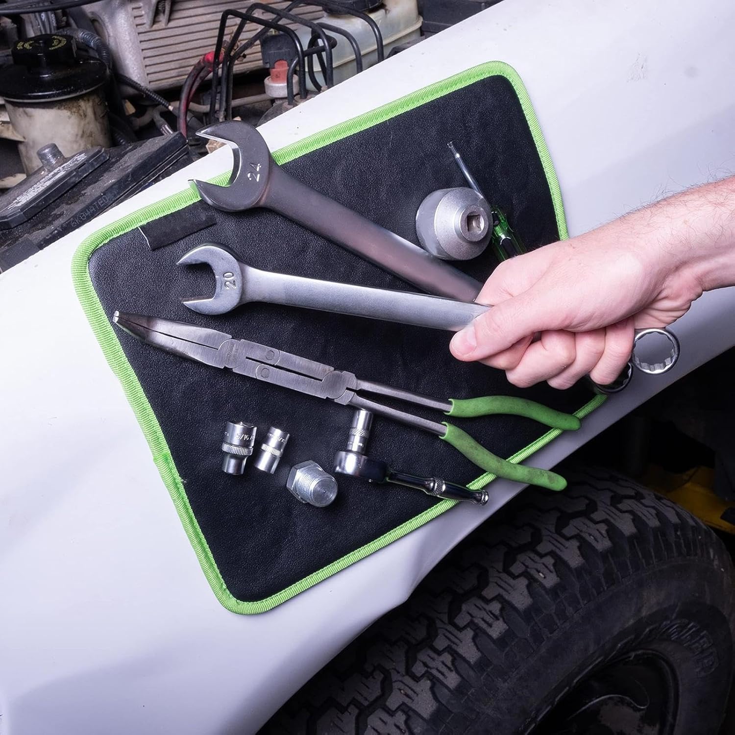 مساحة كافية لحمل عدد من الأدوات (مفكات، مفاتيح، براغي)