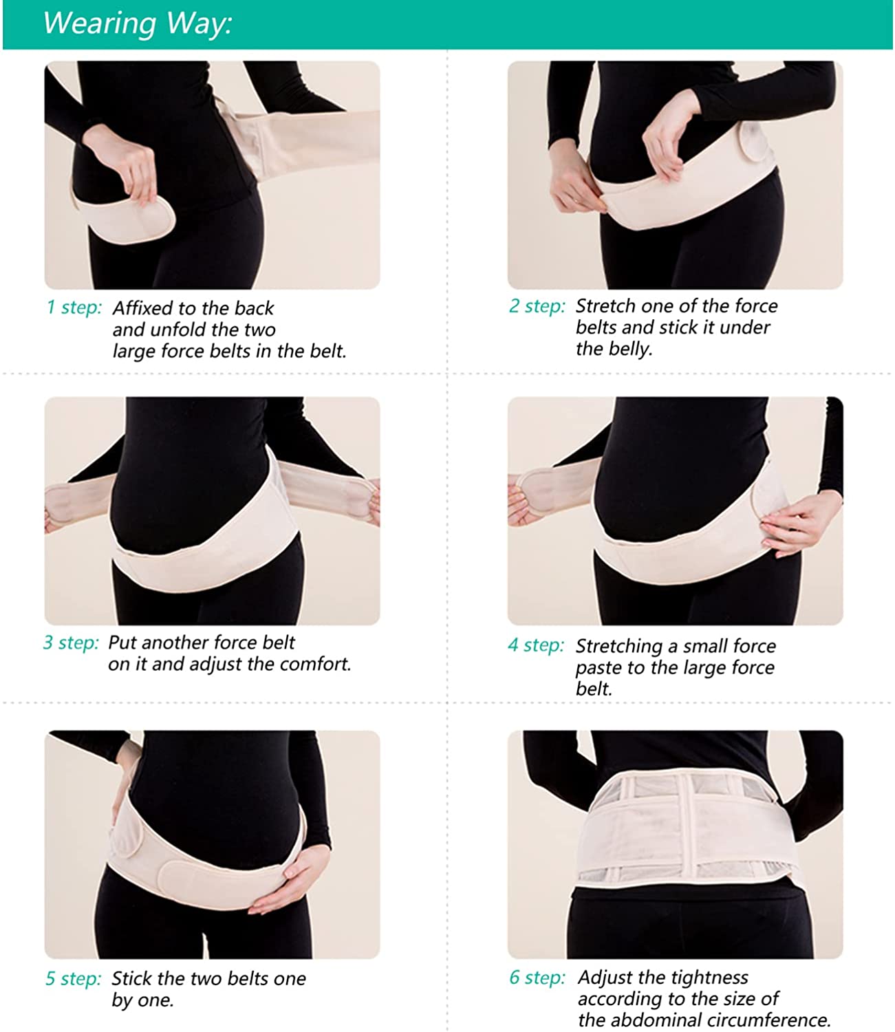 ماشي كل مرحلة ديال الحمل كتكون بنفس الحجم، وهنا كيجي دور الحزام القابل للتعديل. فيه أشرطة مرنة وإبزيم عملي اللي كيخليك توسعيه أو تضيقّيه بسهولة حسب حجم بطنك. نفس الحزام كيغطي جميع المراحل من بداية الحمل حتى الشهر التاسع، يعني استثمار واحد كيكفيك طول المدة.