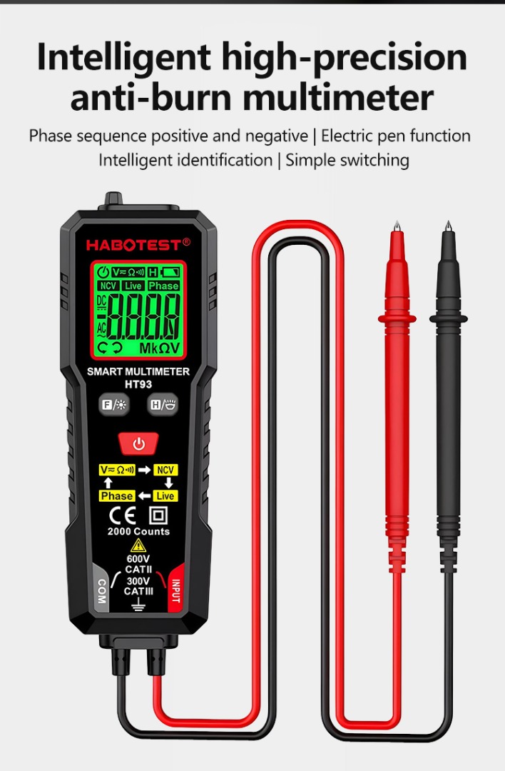 الجهاز قادر على قياس الجهد المستمر والمتناوب، التيار، المقاومة، الاستمرارية، واختبار الصمامات الكهربائية بسرعة ودقة. سيساعدك على إنجاز أعمالك بثقة كبيرة وبنتائج واضحة