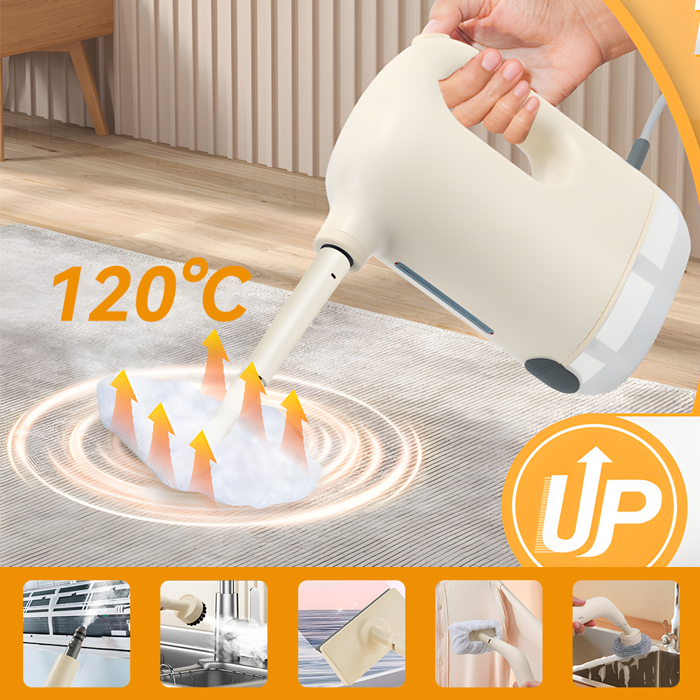يُعدُّ هذا الجهاز أحد أقوى أجهزة البخار المحمولة، حيث يُولد بخارًا بدرجة تصل إلى 120 °C وبضغط حوالي 3.0 بار (3000 PSI)—قادر على إذابة الأوساخ والعفن بسرعة كبيرة، دون الحاجة إلى أي مواد كيميائية.