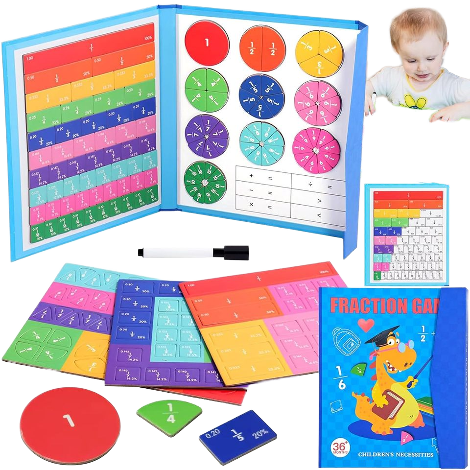 حوّل الأرقام المجردة إلى قطع ملموسة وسهلة الفهم — مع هذا الـ لُغز المغناطيسي للكسور، يسهل على الطفل استيعاب مفاهيم الكسور بطريقة تفاعلية ومرئي