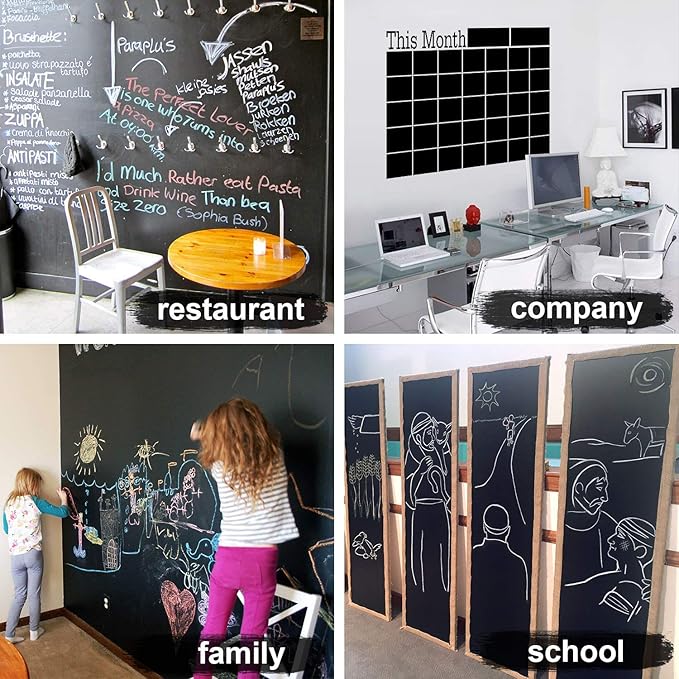 يُستخدم فقط مع الطباشير العادي أو أقلام الطباشير القابلة للمسح. ضعه على سطح أملس ونظيف وجاف لضمان التصاق أفضل