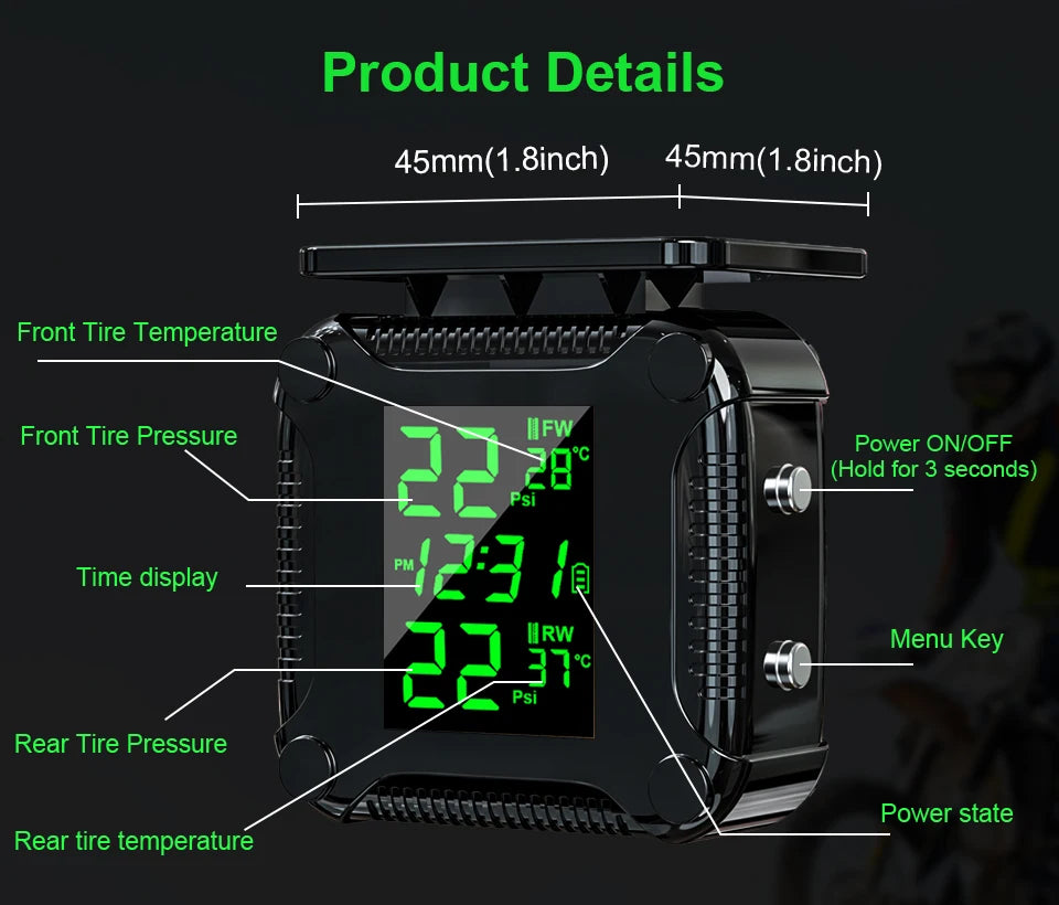 يقيس: ضغط الإطارات + درجة الحرارة بشكل لحظي